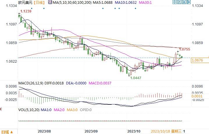 北京时间11月8日15:19欧元兑美元报1.0676/77