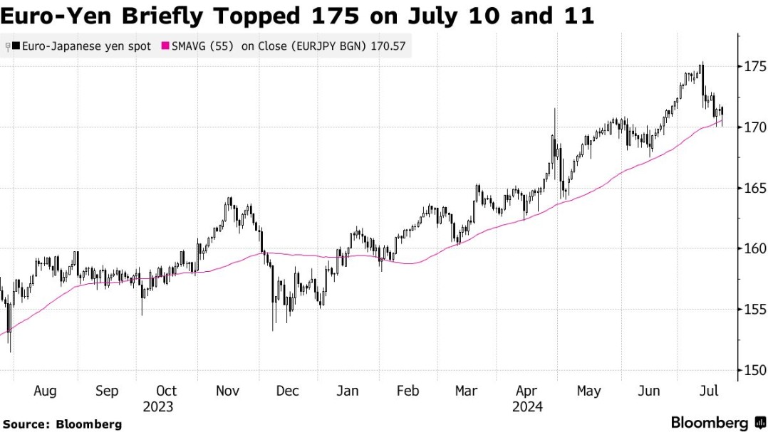 花旗集团分析师预测,如果欧元兑日元汇率接近180关口,日本当局可能会采取行动,通过抛售欧元来干预市场。这一预测基于7月11日欧元兑日元汇率一度触及175.43的历史高点,随后虽有所回落,但东京时段的汇率仍维持在171左右。日本央行在7月11日可能已经投入约3.5万亿日元(约220亿美元)来支撑日元兑美元的汇率,这标志着今年内第三次干预,而随后对欧元兑日元和美元兑日元的汇率检查,进一步表明了日本央行干预外汇市场的决心。