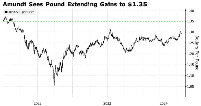 Amundi加入了包括高盛在内抢购英镑的华尔街大行行列。在英国首相基尔斯塔默(Keir Starmer)领导的工党以压倒性优势获胜后,由于英国经济前景更加光明,以及政治稳定的希望,这些银行预计英镑将上涨。有关英国央行降息幅度将小于其他央行的观点也提供了支撑,使英镑有望录得去年11月以来的最佳单月表现。