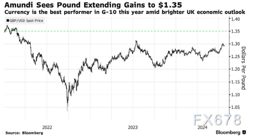 Amundi,是欧洲最大的资产管理公司,管理着 2.3 万亿美元的资产,近几个月来已转向增持,并预计在英镑创下一年新高后将进一步上涨。该公司全球外汇主管 Andreas Koenig 的目标是到年底英镑/美元汇率从目前的 1.29 美元左右升至 1.35 美元。