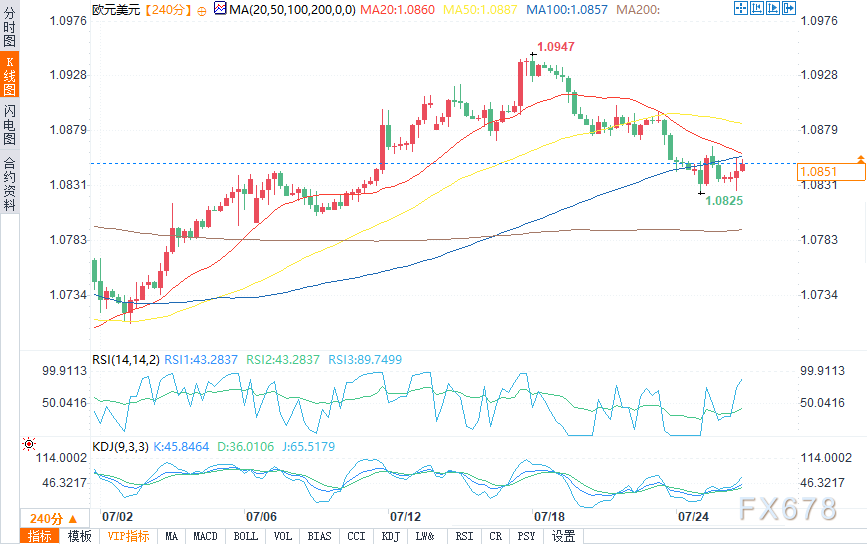近期支撑位在1.08246美元、1.08052美元和1.07818美元。50日均线在1.08686美元,200日均线在1.08262美元。