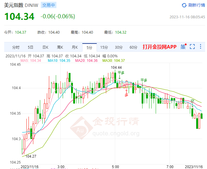北京时间周四(11月16日)亚盘开盘,美元指数交投于104附近,美元指数周三下跌超过1.5%,为一年多来的最差表现。主要非美货币对美元涨跌不一,欧元/美元交投于1.0872附近;欧元兑美元周三无法保持周二的涨势,英镑/美元徘徊在1.2484附近;英镑兑美元周三下跌,美元/日元交投于150.61附近;美元兑日元周三触及的一周低点反弹。今日基本面关注22:15美国10月工业产出月率和23:00美国11月NAHB房产市场指数。