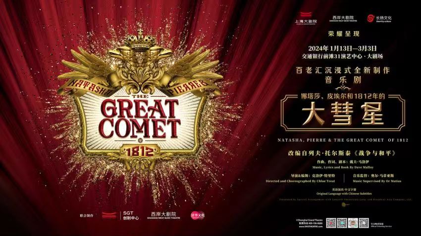 十余年前,鬼才创作者戴夫.马洛伊在旅途中阅读了这本著作,被其中娜塔莎和皮埃尔这两个迷失又相互救赎的人物所打动,于是开启了《大彗星》的创作。他选取了原著第二卷第五部70页的剧情内容,提取娜塔莎、皮埃尔、阿纳托尔作为主要角色,重新建构了一部现代音乐语汇种类丰富、舞台时空灵动交错、观演关系互动新颖的沉浸式音乐剧。