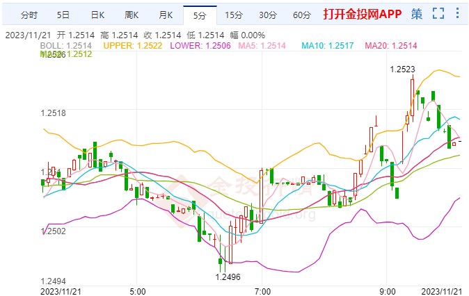周二(11月21日)亚市早盘,英镑兑美元汇率交投于1.2500附近,今日英镑/美元开盘于1.2503,截至发稿英镑汇率最高触及1.2524,最低下探至1.2500。