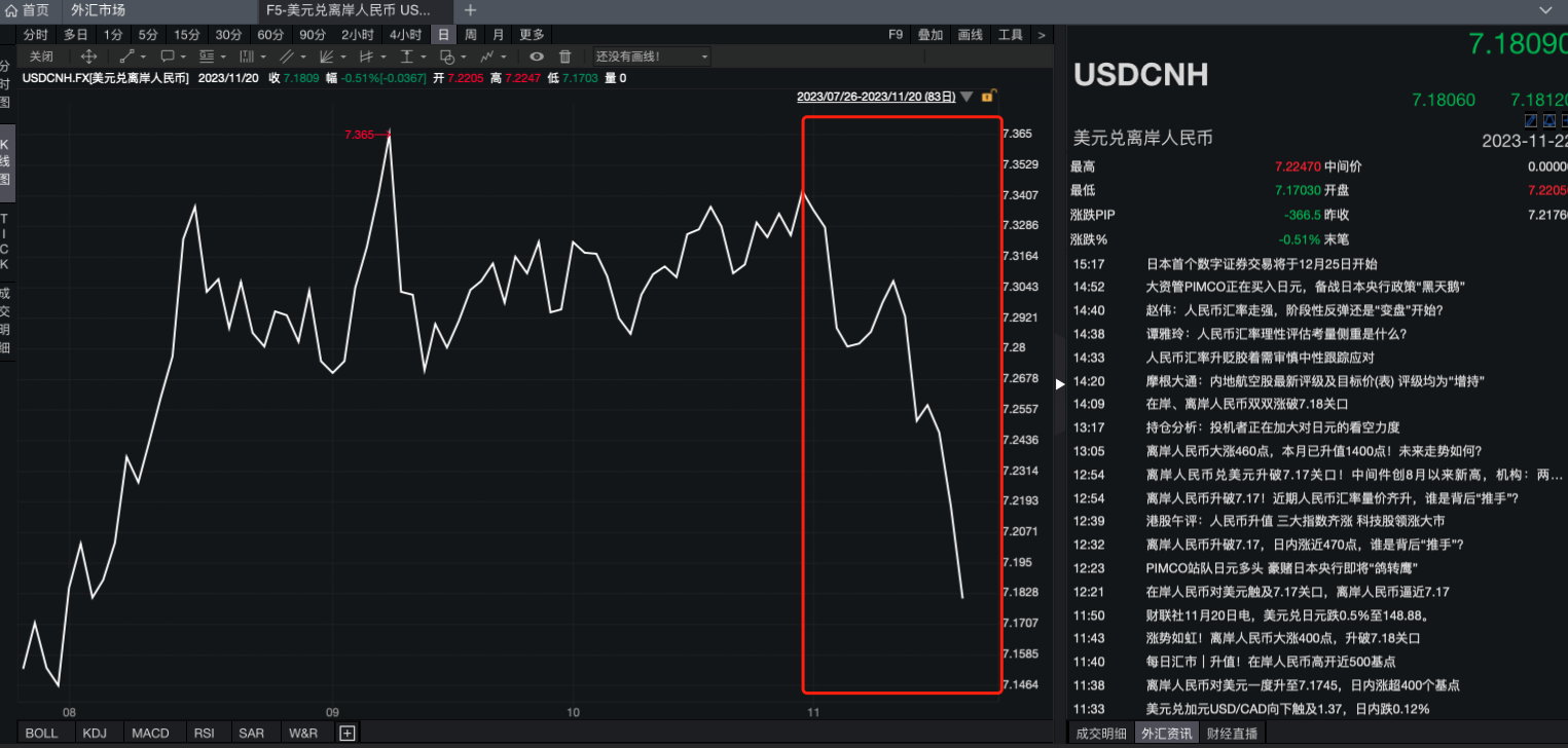 离岸人民币对美元汇率自11月份以来持续走强