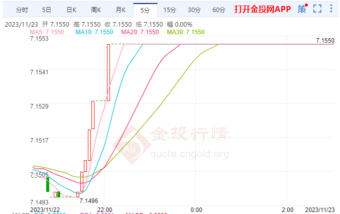 周四(11月23日)亚盘尾盘,美元/人民币大幅上涨,目前交投于7.1550附近,截止北京时9:23,美元对人民币报价7.1550,涨幅0.27%,上一交易美元兑人民币汇率最低价为7.1356,收盘价报7.14550。在持续升值过后,人民币汇率的向上空间已经打开。