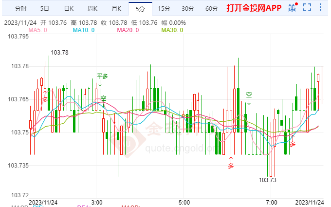 北京时间周五(11月24日)亚盘开盘,美元指数交投于103附近,美元指数周四下跌。主要非美货币对美元涨跌不一,欧元/美元交投于1.0903附近;欧元兑美元周四在1.0900附近徘徊,英镑/美元徘徊在1.2534附近;英镑兑美元周四短暂升至10周高点,美元/日元交投于149.65附近;美元兑日元周四在149.55左右换手。今日基本面关注22:45美国11月Markit制造业PMI初值。