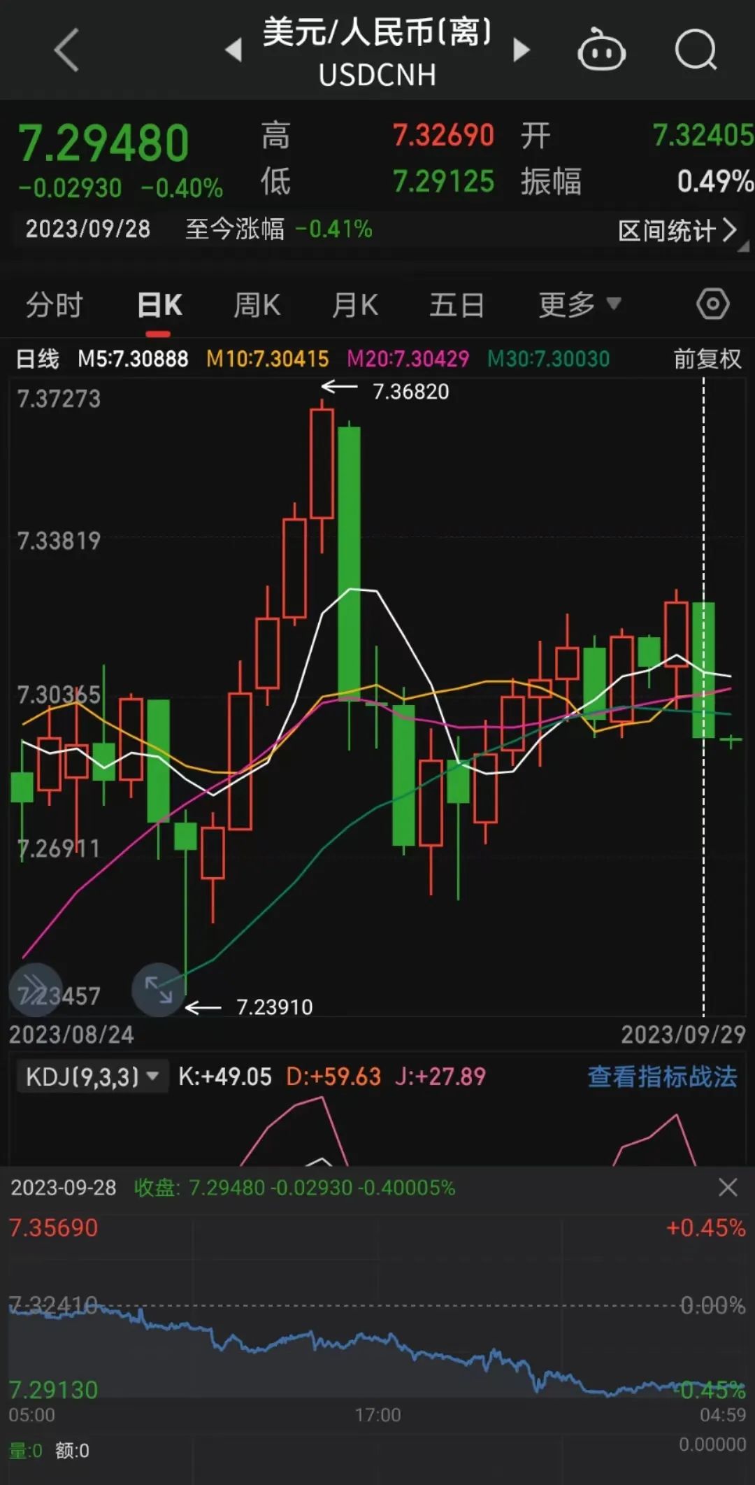 值得注意的是,离岸人民币对美元28日整体上涨将近400点,涨穿7.3元,北京时间29日4时59分报7.2948元,收复7.3元关口。