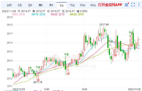 摘要周二(11月28日)本交易日现货黄金日内维持涨势,今日开盘报2014.01美元/盎司,最高触及2017.89美元/盎司,最低触及2012.39美元/盎司,截止发稿金价报2016.52美元/盎司,涨幅0.16%。
