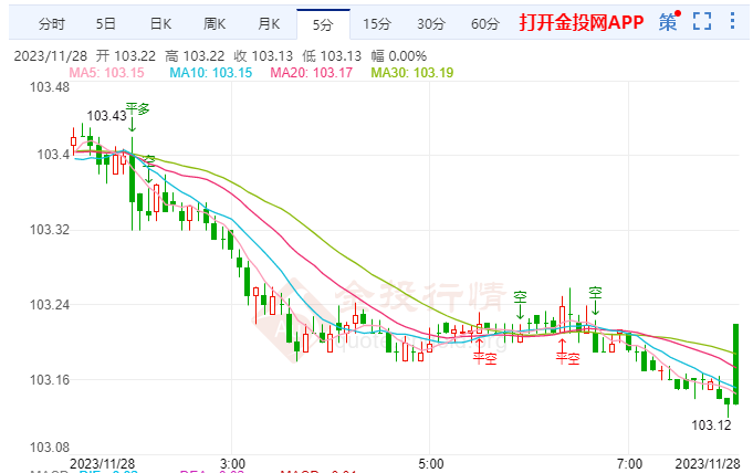 北京时间周二(11月28日)亚盘开盘,美元指数交投于103附近,美元指数周一延续跌势。主要非美货币对美元涨跌不一,欧元/美元交投于1.0958附近;欧元兑美元周一稳步上涨,英镑/美元徘徊在1.2633附近;英镑兑美元周一站稳在1.2600上方,美元/日元交投于148.33附近;美元兑日元周一扩大跌幅,跌破149.00。今日基本面关注22:00美国9月FHFA房价指数月率和23:00美国11月谘商会消费者信心指数。