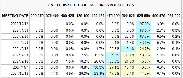 与此同时,日本10月服务业PPI为2.3%,高于9月修正后的2%,这增加了人们对日本央行将在2024年结束负利率的看法。