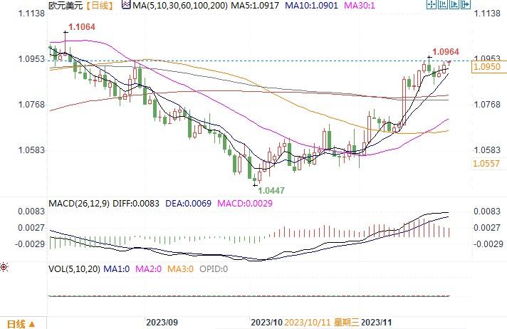 北京时间11月27日14:01欧元兑美元报1.0950/50