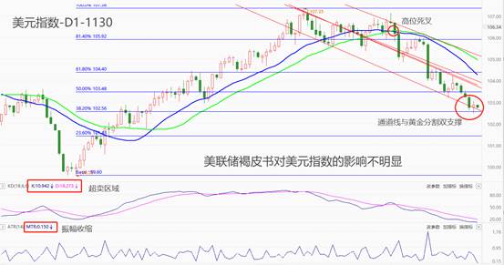 ATFX汇市:11月30日,美联储发布11月褐皮书,文章首段提及:“总体而言,自上次报告以来,经济活动有所放缓······在报告所述期间,未来6至12个月的经济前景有所减弱”,为全文的鸽派论调奠定基础。褐皮书发布后,美元指数表现平淡,五分钟内并未有大幅涨跌。