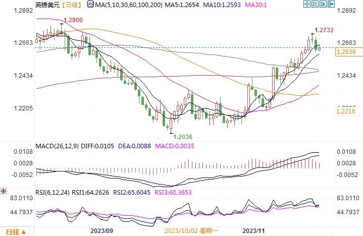 Convera的首席外汇策略师George Vessey表示:“11月,英镑兑美元上涨了近5%,这是自去年11月以来最大的月度涨幅。周三在1.27美元上方交易,随着美元走软加快,这延续了连续四个交易日的高点低点的上升。”