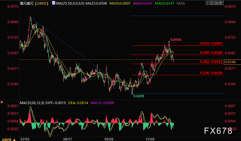 截至目前,澳洲联储决议和澳大利亚第三季度GDP数据仍对市场持续影响中,澳元延续近期抛势。市场关注于周五(12月8日)北京时间21:30将公布美国非农就业数据,澳元兑美元也有所回落。周四欧盘时间,欧元兑美元回落至0.6545的低点。