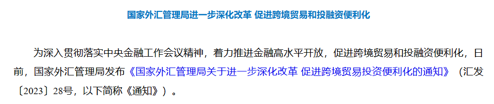国家外汇管理局网站12月8日消息,国家外汇管理局日前发布《国家外汇管理局关于进一步深化改革 促进跨境贸易投资便利化的通知》。