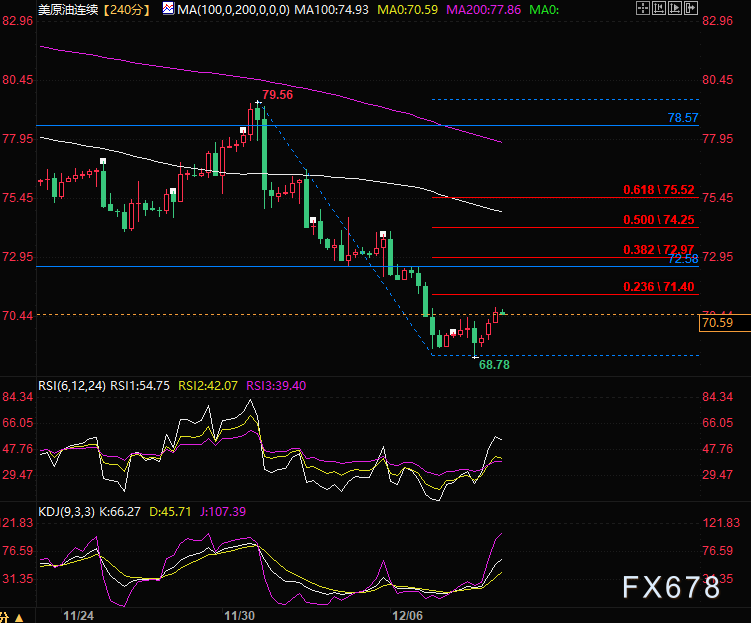 汇通财经APP讯——周五(12月8日)欧盘时段,美原油连续保持触底反弹,现报70.68/每桶,涨幅1.5%。