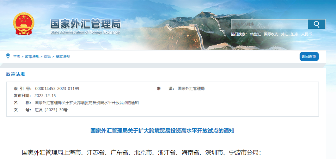 跨境贸易投资高水平开放试点最新扩围。
