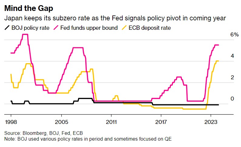 注意差值——日本维持零利率不变,美联储则暗示明年将转向宽松政策