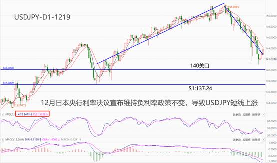 ATFX汇市:日本央行12月利率决议宣布,维持-0.1%的基准利率不变,维持0.00%的10年期国债收益率目标不变。行长植田和男表示,将耐心维持宽松货币政策,必要时将毫不犹豫采取更多宽松措施,由于美联储的原因急于改变政策是不恰当的,目前很难确定退出负利率政策的计划。受此消息影响,USDJPY在今日10:50~10:55从142.65上涨至143.4,之后因为行长植田和男的讲话,USDJPY在今日14:40~14:45从143.68下跌至最低142.51,随后在收盘时反弹至143.27。综合来看,日本央行12月利率决议对USDJPY起到了提振作用,亦即驱动了日元的短期贬值。不过,从日线周期看,USDJPY仍处于显著的空头趋势之中。
