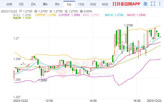 周五(12月22日)欧市盘中,在乐观的英国11月零售销售数据的支撑下,英镑兑美元汇率延续了反弹势头,今日英镑/美元开盘于1.2684,截至发稿前最高上探至1.2714,最低1.2676。