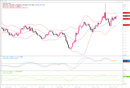 技术层面上,黄金日线图显示,金价沿着布林带通道中轨线之上呈小幅微升的走势形态。金价周四盘中回调在看涨的20日简单移动平均线(SMA)附近遇到买盘的支撑。随着金价向上突破2047.90美元/盎司阻力,说明黄金多头在蛰伏等待时机。与此同时,技术指标仍处于积极水平,但缺乏足够的方向性动力。晚间的11月份美国核心个人消费支出(PCE)物价指数可能会给出较大的波动影响,需加以密切留意。