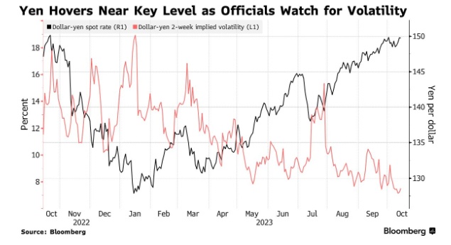 对日本当局来说,目前更重要的是似乎日元的大幅波动。日本财务大臣铃木俊一10月3日表示,他不会根据汇率水平来判断干预的可能性,而是通过波动性来判断。他随后在10月6日表示,渐进的、单向的走势可能被视为过度波动。
