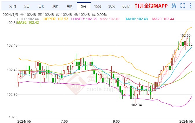 周五(1月5日)亚洲时段,美元指数保持强势,企稳102.40关口上方,新年首个重头戏来袭,美元多头能否守住升势?昨日素有“小非农”之称的美国ADP数据表现远强于预期,打压了市场的降息预期,推动美债收益率集体上涨,美元指数拉升后最终小幅收跌。