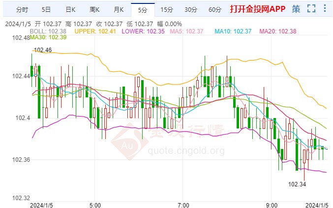 周五(1月5日)亚市盘中,美元指数小幅走跌,目前交投于102.30附近,今日美元指数开盘报102.43,上一交易日(1月4日),素有“小非农”之称的美国ADP数据表现远强于预期,推动美债收益率集体上涨,10年期美债收益率再次触及4%,最终收报4.002%;对美联储政策利率更敏感的两年期美债收益率收报4.38%。美元指数在数据公布后短暂拉升,但最终小幅收跌0.04%,报102.43。