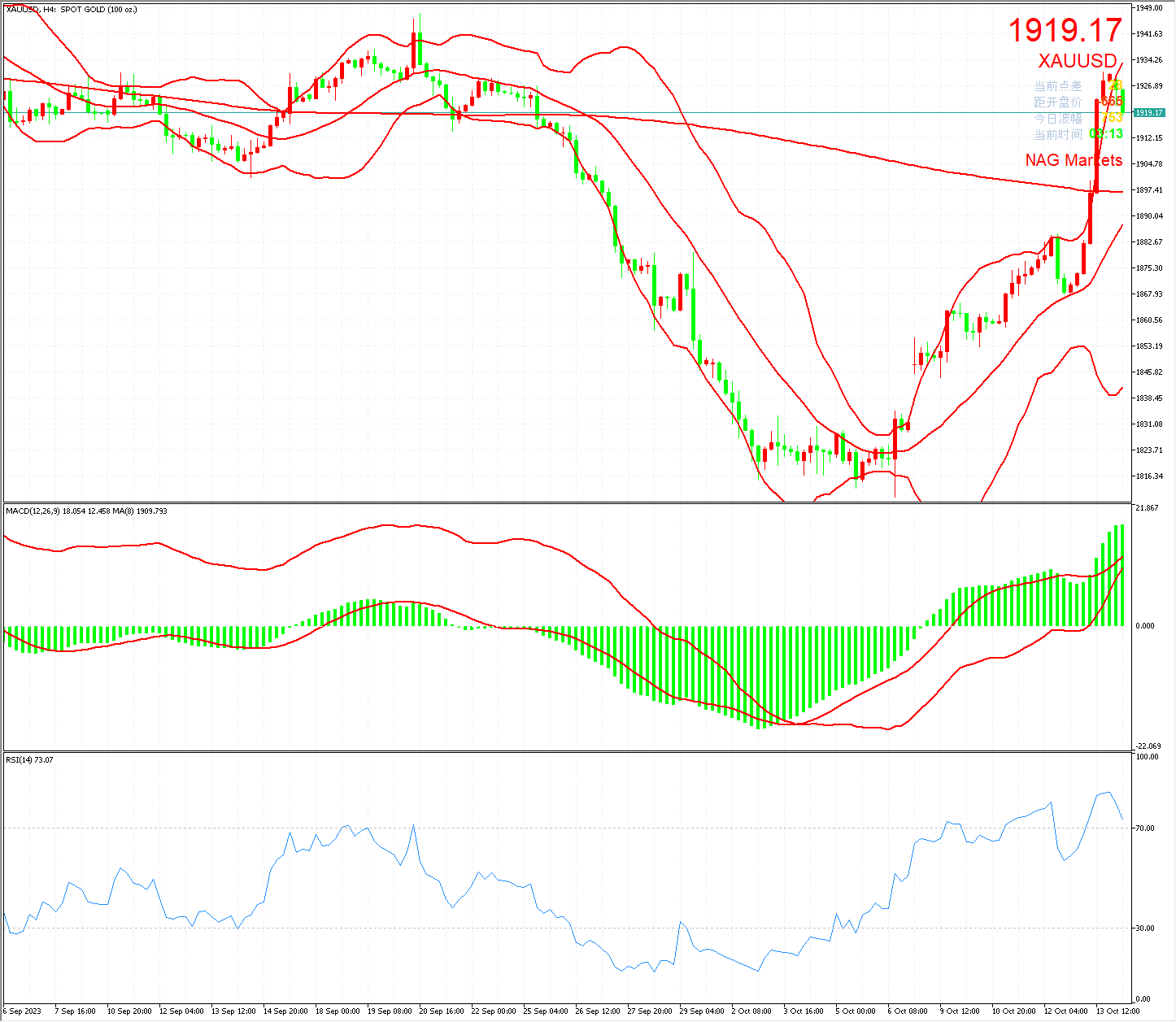 黄金方面来看,金价周五暴涨超过60美金,日内收高至1930.05美元/盎司位置,随着周四晚间巴以冲突局势升级,导致投资者涌入黄金寻求避险, 加上美联储近期的鸽派态势,美债收益率收低,推动金价上涨。后市来看短线金价或处于震荡区间,具体走向仍需关注最新地缘局势影响,短线波动较大,投资者需谨慎控制风险。
