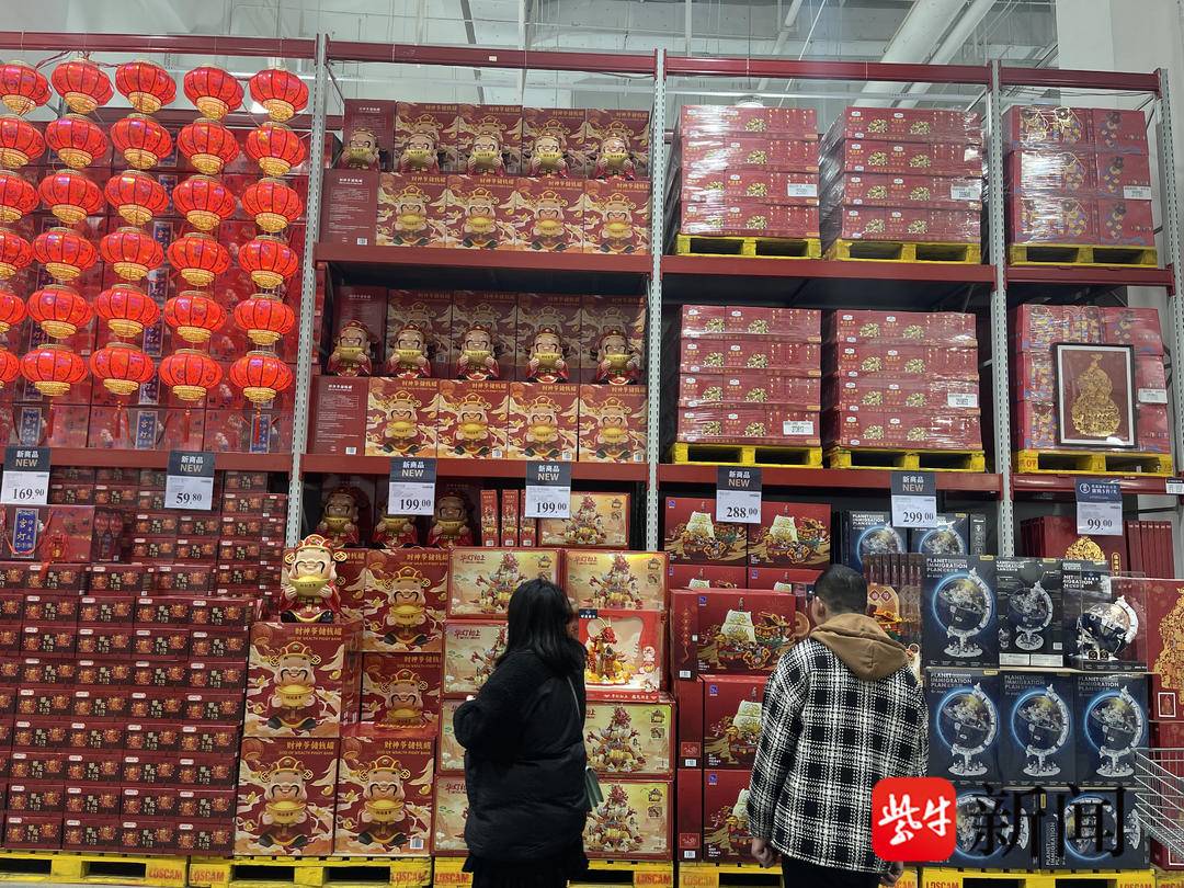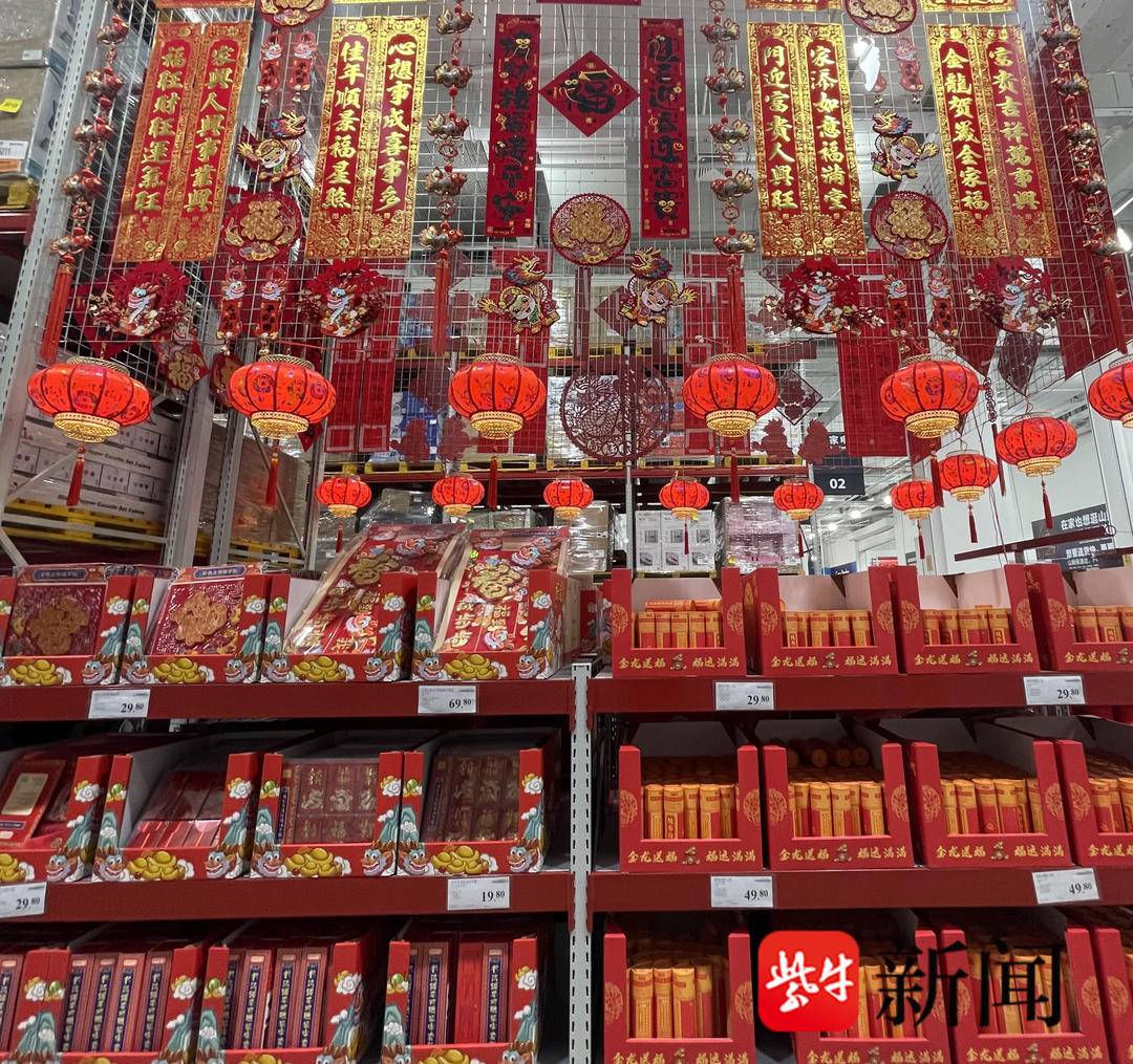 记者昨日一进常州山姆会员店,浓郁的节日气氛便扑面而来。雕花红灯笼、财神存钱罐、中国龙积木……一件件超市定制的商品已占据了超市入口重要位置。再仔细一瞧,不仅是入口,在超市随处可见,众多商品设计元素都加入了“中国龙形象”,像龙型巧克力、龙腾四海坚果套装、超大的奶奶公仔、龙年儿童新春汉服套装等,也是让人应接不暇。就连宠物用品都考虑融入了龙元素,如藏龙卧虎宠物床、龙腾虎跃猫爬架,真的不难看出,“洋超市”是懂中国消费者的,年货市场做得既喜庆又实惠,不仅品质好,包装也大气,件件商品看起来都非常有吸引力。