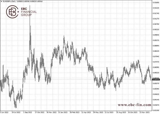 周二(1月9日)英镑兑欧元仍处于一周前触及的三周高位附近,原因是预计欧洲央行会比英国央行更早降息。