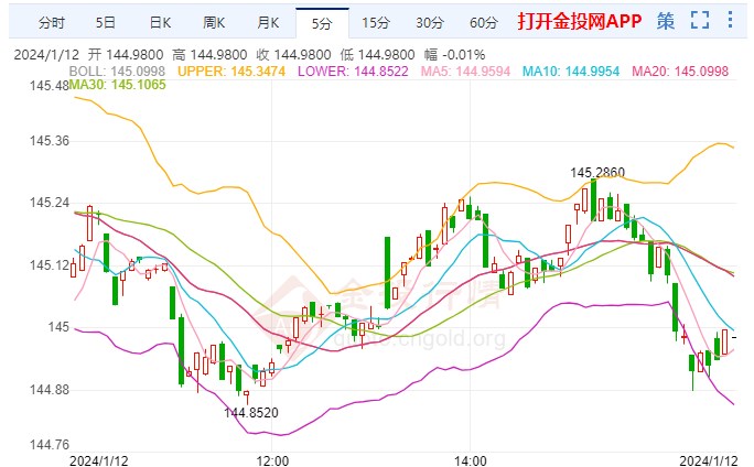 周五(1月12日)美元兑日元汇率继续回撤,最新交投于144.9570附近,日本元旦发生毁灭性地震、东京通胀率下降以及工资增长数据疲软的预期可能会推迟日本央行(BoJ)改变极端鸽派立场的计划,从而限制日元涨幅。尽管如此,地缘政治风险以及中国的经济困境继续支撑着日元的相对避险地位。