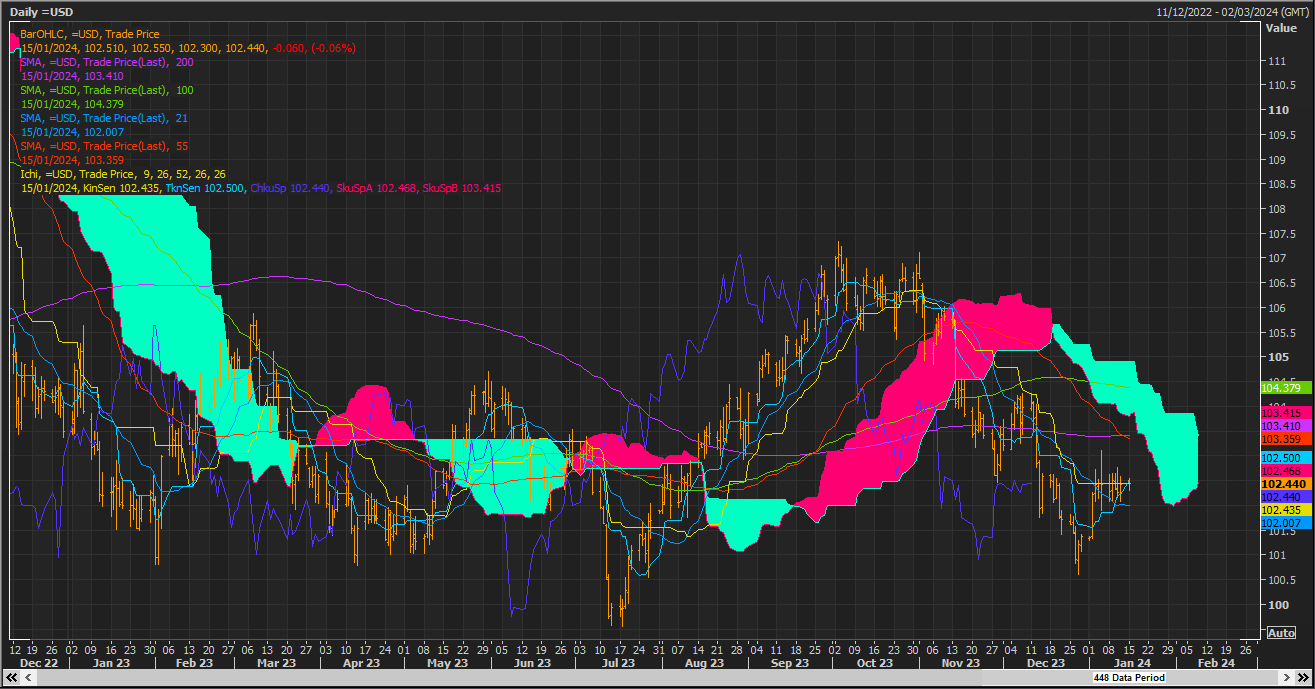 周五的数据显示,12月份美国生产者价格意外下跌,导致美国公债收益率下滑,对美联储今年最早从3月份开始降息的押注也随之上升。这将继续对美元构成下行压力。