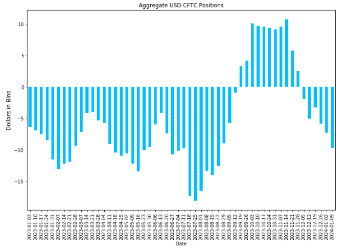 美国商品期货交易委员会(CFTC)的数据显示,截至1月9日的一周,投机者持有的美元净空仓价值从一周前的72.5亿美元增至97.0亿美元。目前的净空头头寸为8月份以来最大。