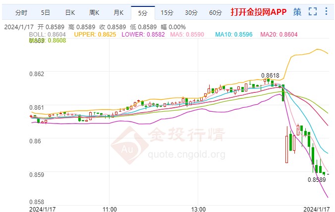 周三(1月17日)欧洲时段早盘,英国消费者物价指数(CPI)数据走强后,欧元/英镑汇率失去动力,欧元/英镑交叉价跌破0.8600心理关口。交叉盘的下跌受到英国12月份乐观通胀的支持。