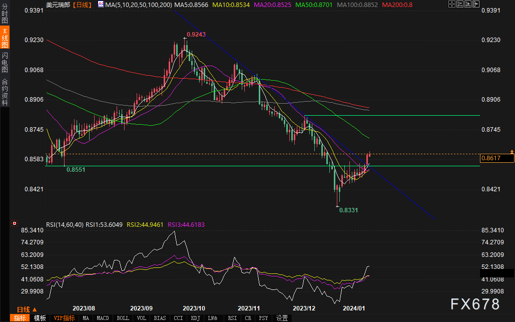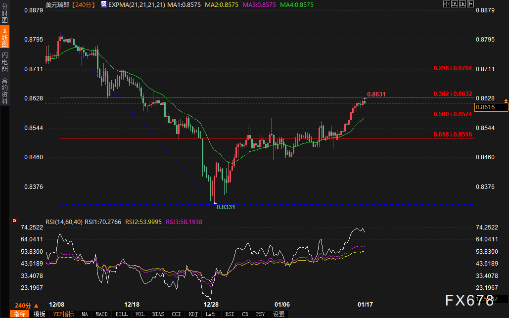 汇通财经APP讯——周三(1月17日),欧盘时段,美元/瑞郎震荡上扬,盘中报0.8624,涨0.12%。瑞士主力报1.1668,跌0.18%。