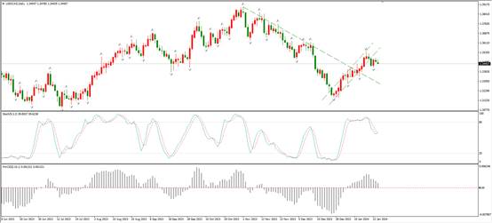 ATFX汇市:加拿大的宏观经济表现疲弱,基准利率却太高。2023年三季度,加拿大GDP增速年率仅为0.47%,连续两个季度下降,已经跌至1%一下,基本维持原地踏步的状态。当前的基准利率为5%,远高于GDP增速,对宏观经济复苏有抑制作用。今日22:45,加拿大央行将公布1月份利率决议结果,市场普遍预期其将维持5%的基准利率不变。23:30,加拿大央行行长麦克勒姆将召开货币政策新闻发布会,重点关注其对经济前景、就业、通胀率的相关表现。如果表态偏鸽,加元将受到利空冲击。加拿大和美国之间的经贸关系密切,两者的货币政策存在共振性。目前市场的主流预期认为美联储将会在今年夏季之前降息一次,预计加拿大央行将同步降息。