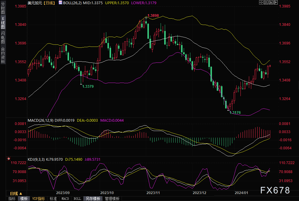 美元/加元汇率大幅走高,最高触及1.3527,收报1.3522,为12月14日以来最高收盘价,涨幅约0.46%。。