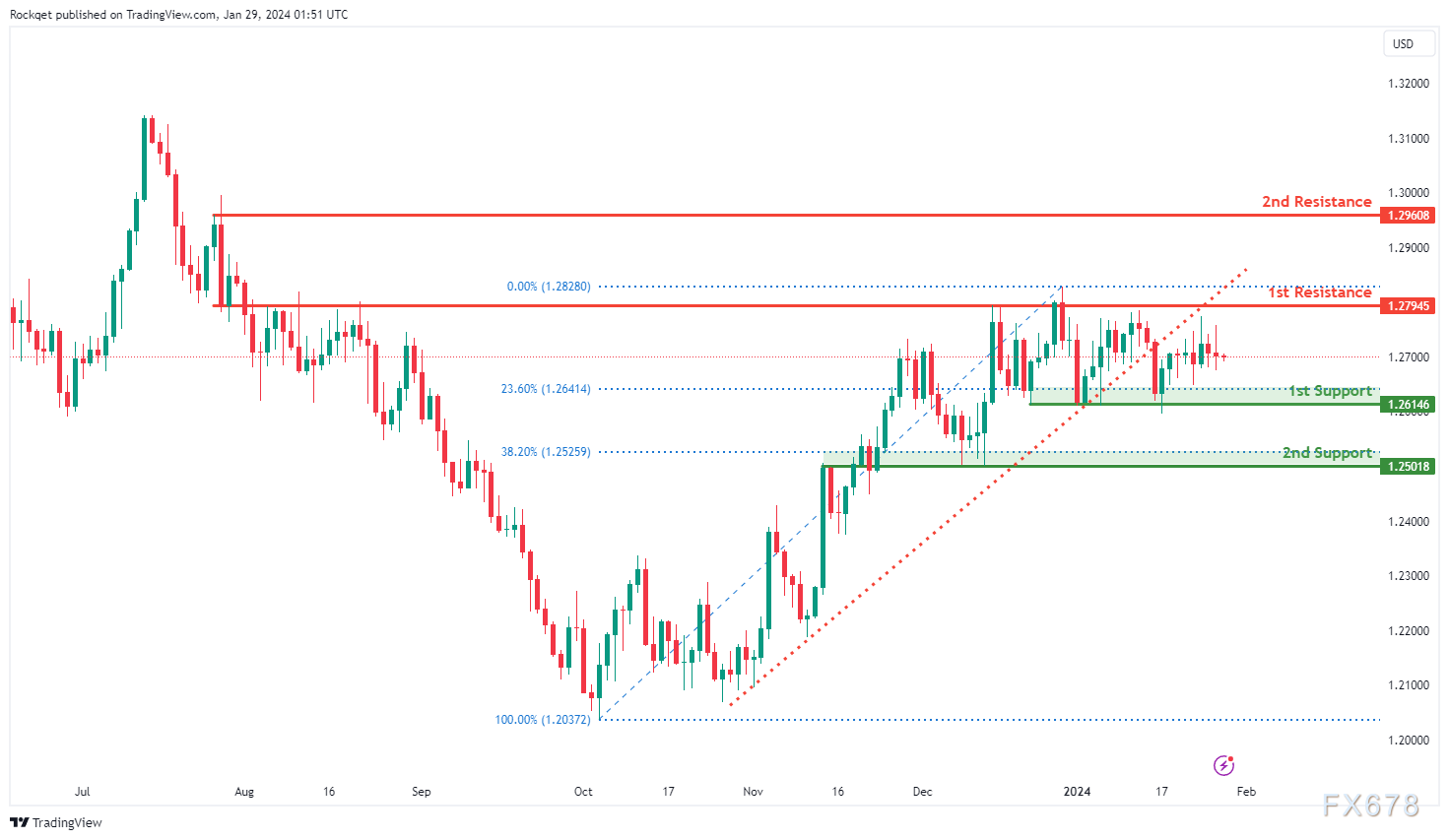 在阻力方面,第一个阻力位1.2794被认为是一个重叠阻力位,这个价格水平在历史上既是支撑位也是阻力位。这使得它成为一个可能出现抛售压力的潜在阻力位。