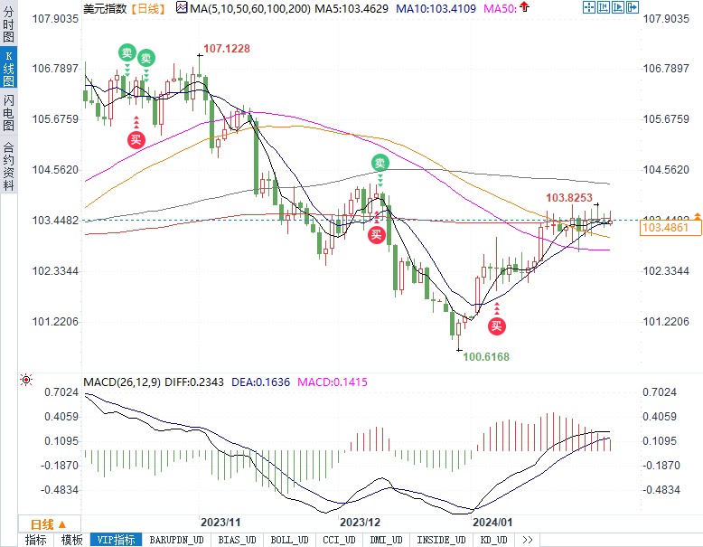 汇通财经APP讯——周三(1月31日),美联储会议前美元持坚,美元指数仍停留在横跨102.137-103.965的拥挤云区。英镑/美元在美联储事件风险前跌破1.27,但下一步方向还需关注两大主要央行的态度。看跌欧元/美元者需迫使日线收在关键的1.0822费波纳奇位下方,美元/日元技术面暗示恢复看涨趋势,将测试关键费波纳奇位。
