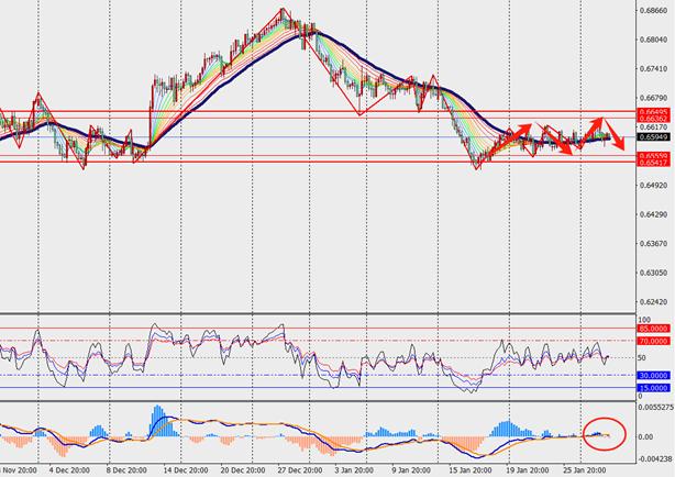 技术面:澳元兑美元H4级别突破失败后下跌,并在48日多空分界线附近运行,此外,MACD双线和量能柱在零轴附近向下扩张。CPI若符合或低于预期将支持2月份政策维持不变的观点,同时支持澳联储关于9月份开启宽松周期的预期。