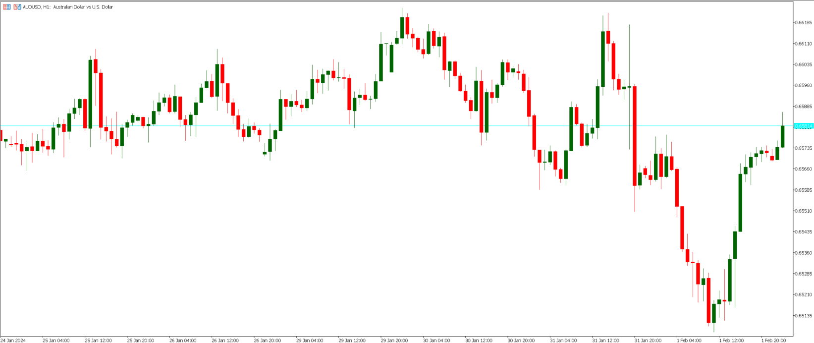 在让我们把目光转向澳美(AUDUSD),澳大利亚刚刚公布了第四季度的CPI,其下降速度远快于预期,市场预测最早可能在5月开始降息,澳元在2024年的第一个月表现得非常颓废,连续四周下跌。然而随着美元指数(DXY)昨日晚盘时间的大跌,澳美(AUDUSD)也止住颓势,开始反弹。本期的美国非农就业数据和失业率数据即将揭开面纱,澳美(AUDUSD)可否真正展开大反攻或许就看今夜了,请广大交易者朋友们把握交易机会。