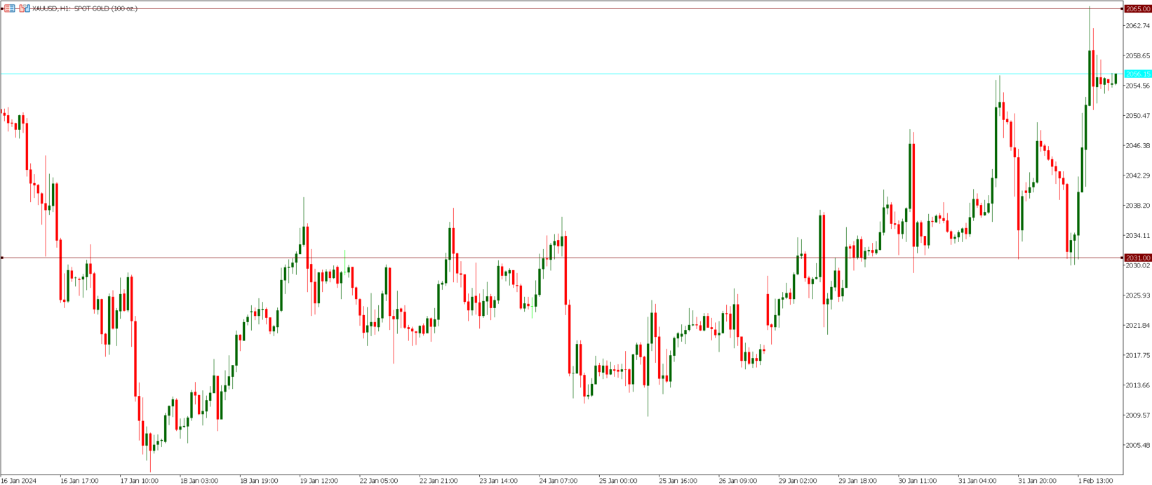 随着昨日晚盘美元指数(DXY)的大跌,再加之最近中东局势的紧张,黄金(XAUUSD)昨日晚上时间又开始起飞,短线上行约3200点,最高突破了2065美元每盎司大关,随后虽有小幅回调,但依然站在2050之上。今晚,即将迎来美国大非农数据,市场都在高度关注着本期的数据,届时黄金(XAUUSD)是否可以继续挑战前高,请广大交易者朋友们拭目以待。