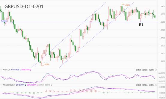 技术角度看,GBPUSD处于中期上涨趋势的横盘震荡阶段,下方R1:1.2597即为近期支撑位。震荡走势已经持续一个半月时间,这段时间里美元指数累计涨幅1.81%,意味着英镑具有远超其它非美货币的抗跌属性,同时又存在补跌的可能性。震荡指标KD的读数处于中等偏下区间,此前快慢线已经向下交叉,短线走势偏空。MACD指标的柱线处于零轴下方,但绝对值偏小,中短期震荡格局显著。综合来看,多数指标认为GBPUSD的震荡格局将会延续,一旦R1被跌破,有可能触发补跌行情。