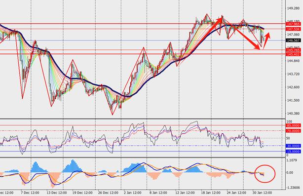 第一阻力位:147.20 第一支撑位:145.80