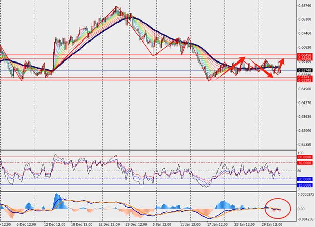 第一阻力位:0.6620 第一支撑位:0.6530