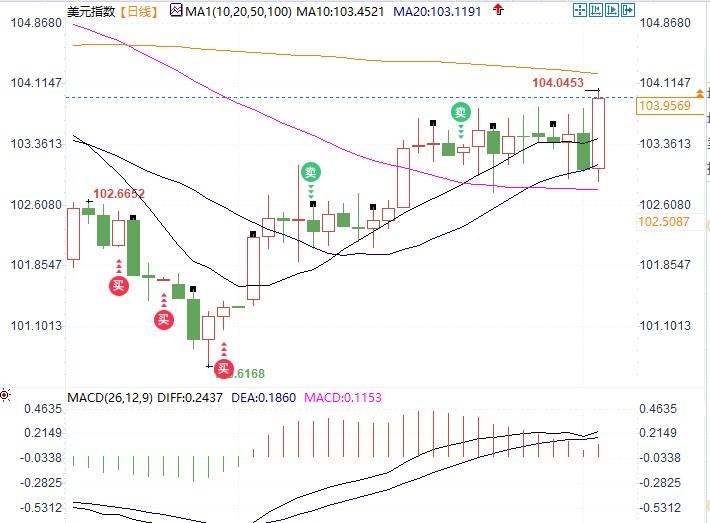 汇通财经APP讯——美元指数在周初小幅波动,周三美联储决议使其剧震超过100点。周四,由于市场预期5月降息幅度加大,美元指数受到冲击,一度跌至103关口。然而,周五在强劲非农数据的提振下,美元指数大幅反弹,成功扭转了周线走势,日内涨幅超过近百点,最高触及104.047,为7周来的最高水平,实现连续第5周上涨。