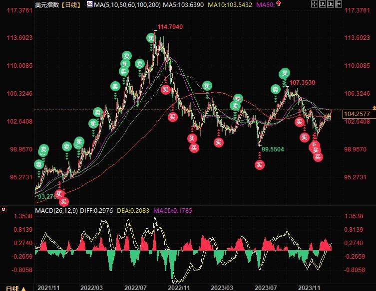持有美元空仓的交易员,眼看着美元指数2月突破日线一目云区,并上看100日移动均线104.22。美元指数已经较12月低点上涨约2%,如果交易员被迫放弃空头押注,该指数可能会进一步上涨。