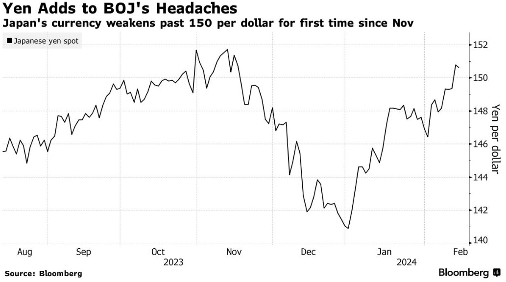 APP注意到,日元兑美元迅速跌破150,令日本央行面临更加复杂的局面。目前日本央行正在考虑2007年以来首次加息的最佳时机。